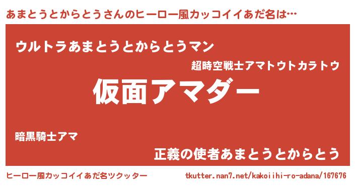 | 意味不明あだ名 | 『住所不定無職あまとうとからとう(86歳)』 |