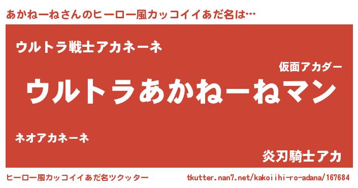 | 男性向けラノベタイトル風あだ名 | 『アカネーネスレイヤー』 |