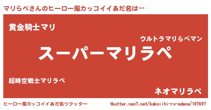 | 胡散臭い通販商品みたいなあだ名 | 『必ず成功するブレスレット…その名も「マリらぺ」』 |