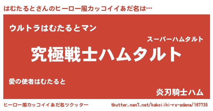 | ファンタジー風あだ名 | 『ゼハムトゥ』『エターナルハムタルトー』 |