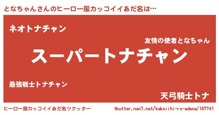 | 胡散臭い通販商品みたいなあだ名 | 『億万長者になれるブレスレット…その名も「となちゃん」』 |