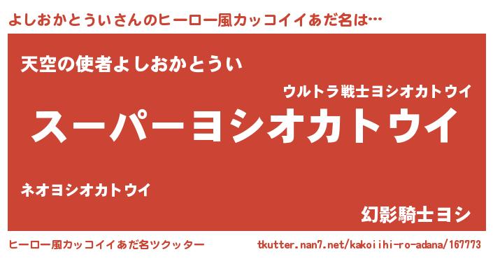 | 男性向けラノベタイトル風あだ名 | 『よしおかとういの憂鬱』 |