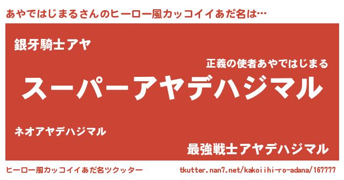 | 女子向けラノベタイトル風あだ名 | 『あやではじまる姫と円卓の騎士』 |
