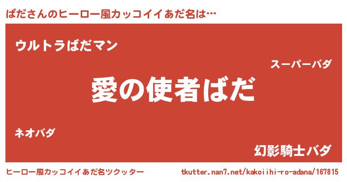 | ヘコむあだ名 | 『豆乳』『ばだを』『ばだにー』 |