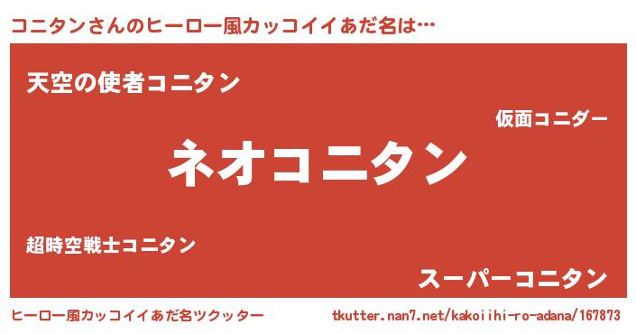 | 男性向けラノベタイトル風あだ名 | 『コニタンという概念が存在しない退屈な世界 』 |