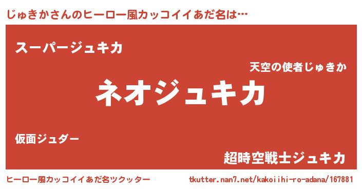 | 女子向けラノベタイトル風あだ名 | 『じゅきかの契約王妃』『じゅきか恋絵巻』 |