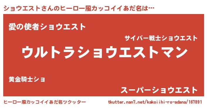 | 男性向けラノベタイトル風あだ名 | 『やはりショウエストの青春ラブコメはまちがっている 』 |
