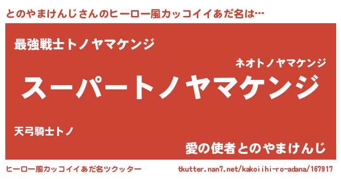 | 男性向けラノベタイトル風あだ名 | 『とのやまけんじの憂鬱』 |