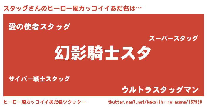 | 意味不明あだ名 | 『とにかく怪しいスタッグ』 |
