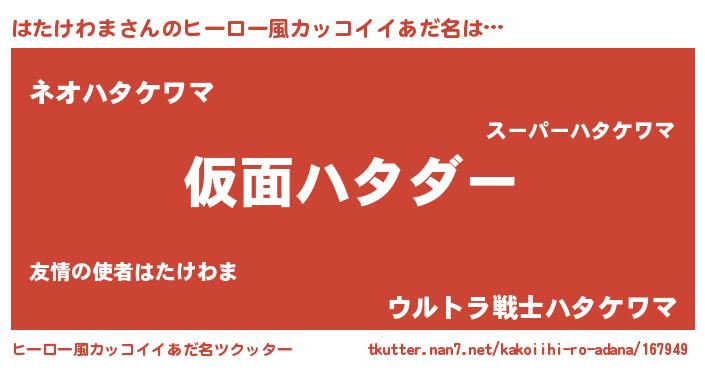 | ヘコむあだ名 | 『はたけわま(苦笑)』『はたにゅー』 |