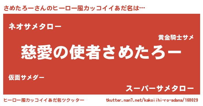 | 男性向けラノベタイトル風あだ名 | 『ノーゲーム・ノーサメタロー』 |
