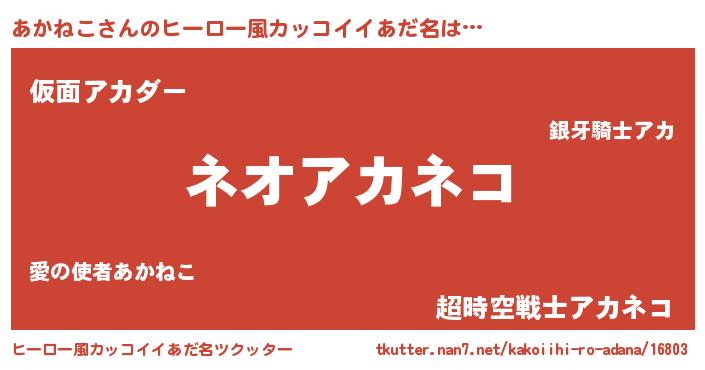 | ヘコむあだ名 | 『あかねこ(遠い目)』『あかを』 |