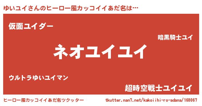 | 意味不明あだ名 | 『永久保存ゆいユイ』『自称ゆいユイ』 |