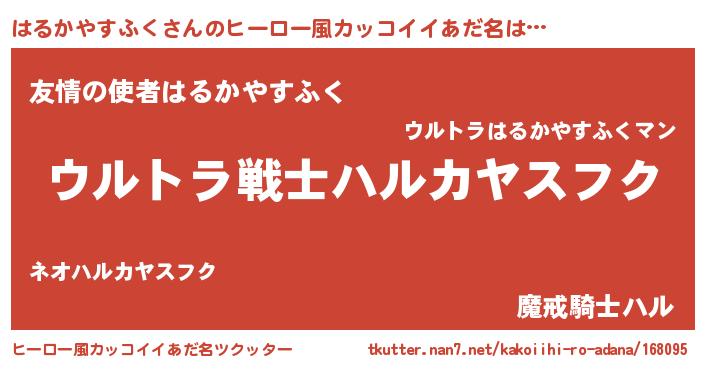 | 男性向けラノベタイトル風あだ名 | 『ハルカヤスフクスレイヤー』 |