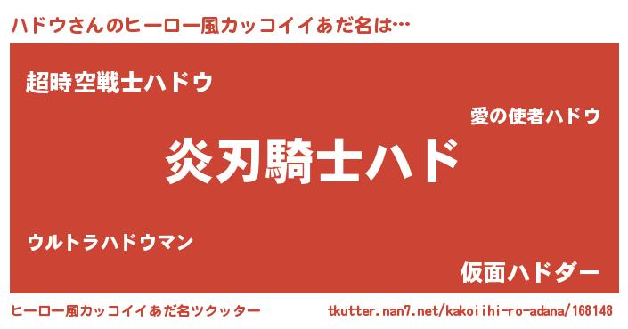| ポケモン風あだ名 | 『ヒハドウ』『ハドゴンZ』『ハードイ』 |