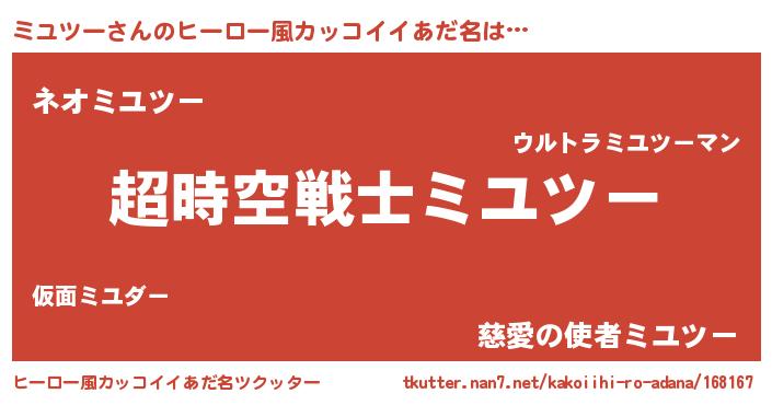 | 女子向けラノベタイトル風あだ名 | 『ミユツーなんてお断りですっ。』 |