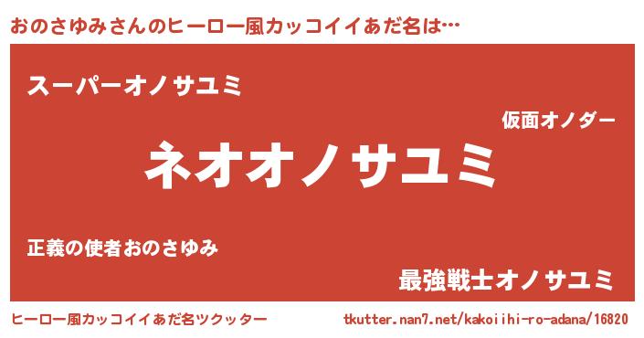 | 男性向けラノベタイトル風あだ名 | 『うちのおのさゆみが世界を掌握している!』 |