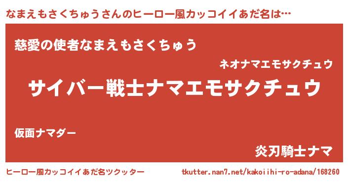 | 意味不明あだ名 | 『自称なまえもさくちゅう』 |