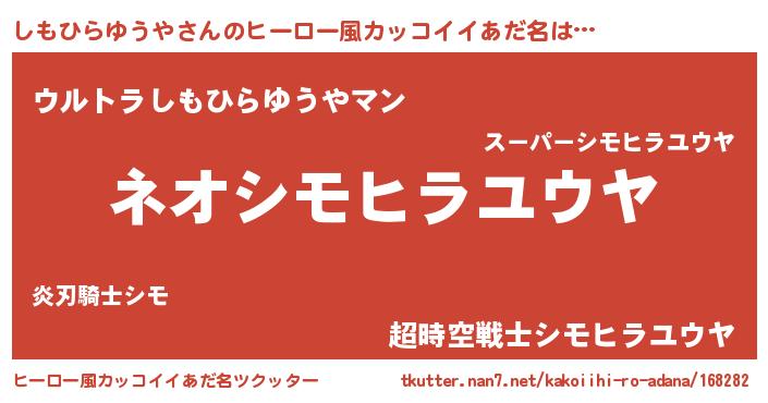 | 意味不明あだ名 | 『永久保存しもひらゆうや』 |