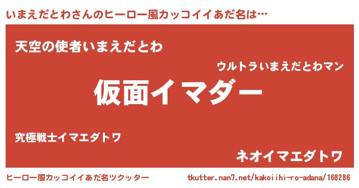 | ヘコむあだ名 | 『いまえだとわ(震え声)』『酢こんぶ』 |
