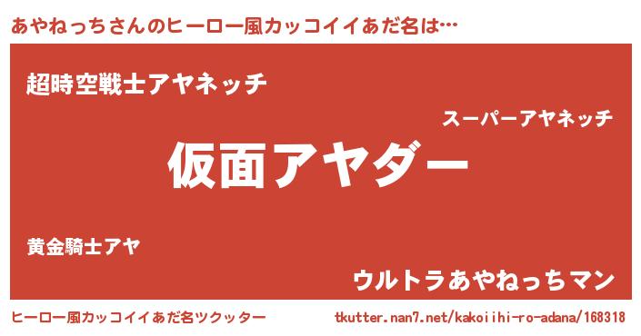 | 胡散臭い通販商品みたいなあだ名 | 『あなたにだけ特別に提供する100年もののヴィンテージワイン…その名も「あやねっち」』 |