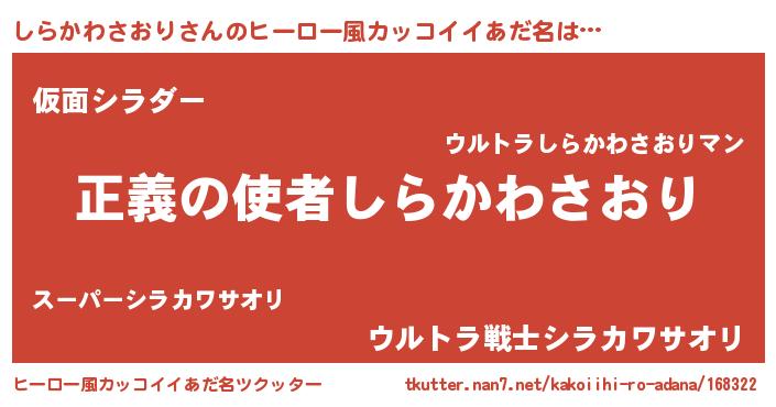 | 男性向けラノベタイトル風あだ名 | 『おまえをオタクにしてやるから、俺をしらかわさおりにしてくれ! 』 |