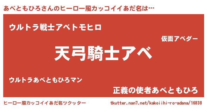 | 男性向けラノベタイトル風あだ名 | 『あべともひろの嫁は女の子じゃないと思った?』 |