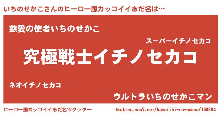| 伝説のあだ名 | 『救世主となる錬金術士いちのせかこ』 |
