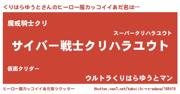 | 胡散臭い通販商品みたいなあだ名 | 『テレビで話題の高麗人参…その名も「くりはらゆうと」』 |