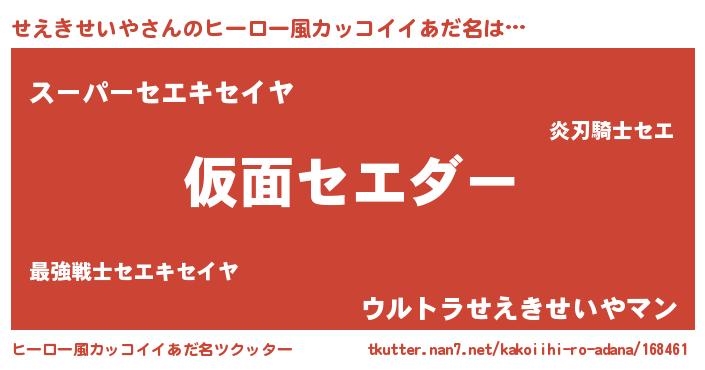 | 意味不明あだ名 | 『住所不定無職せえきせいや(6歳)』 |
