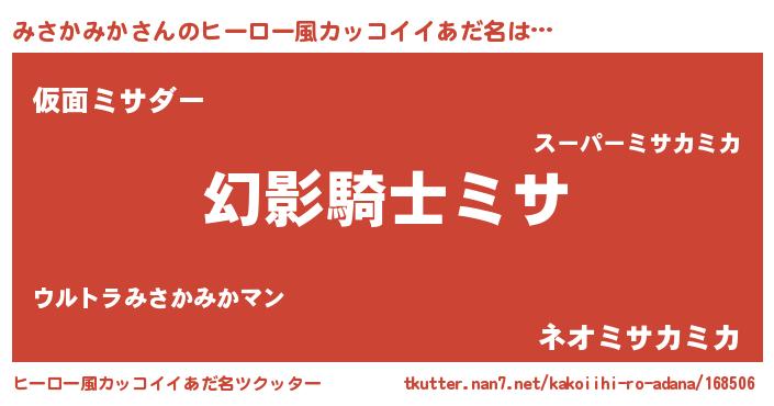 | 男性向けラノベタイトル風あだ名 | 『みさかみかの嫁は女の子じゃないと思った?』 |