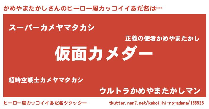 | 胡散臭い通販商品みたいなあだ名 | 『あなたにだけ特別に提供する100年もののヴィンテージワイン…その名も「かめやまたかし」』 |