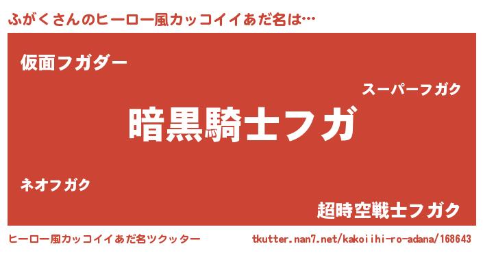 | 男性向けラノベタイトル風あだ名 | 『緋弾のフガク』『魔弾の王とふがく』 |