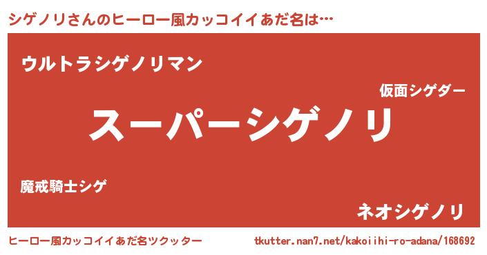 | 男性向けラノベタイトル風あだ名 | 『シゲノリアートオンライン』 |