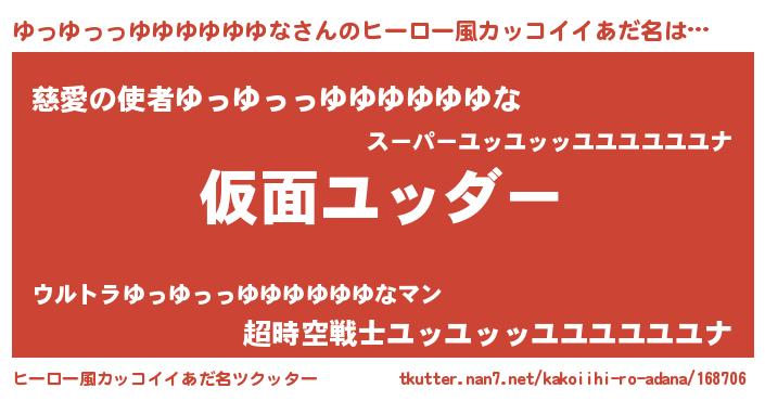 | 男性向けラノベタイトル風あだ名 | 『魔弾の王とゆっゆっっゆゆゆゆゆゆな』 |