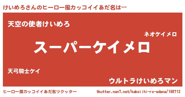 | 意味不明あだ名 | 『ペロリンけいめろ』『永久保存けいめろ』 |