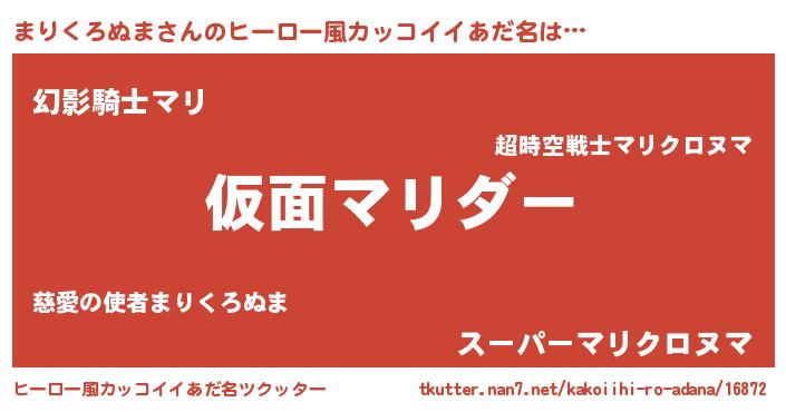 | 男性向けラノベタイトル風あだ名 | 『マリクロヌマスレイヤー』 |