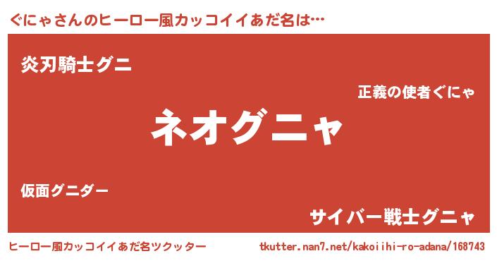 | 意味不明あだ名 | 『永久保存ぐにゃ』『自称ぐにゃ』 |