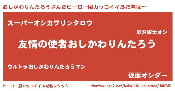 | 男性向けラノベタイトル風あだ名 | 『緋弾のオシカワリンタロウ』 |