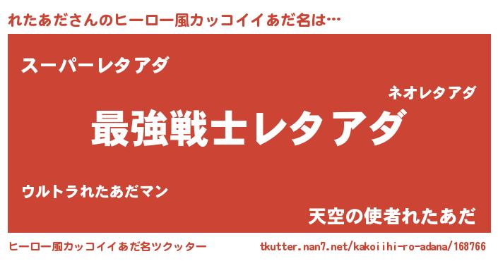 | 男性向けラノベタイトル風あだ名 | 『れたあだ~年齢イコール彼女いない歴の魔法使い~』 |