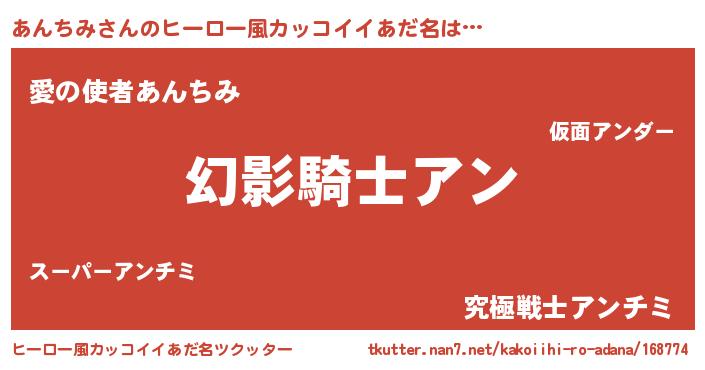 あんちみさんのヒーロー風カッコイイあだ名をツクッター!