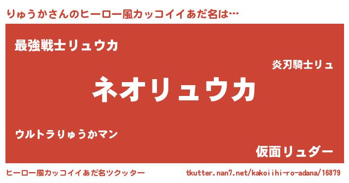 | 男性向けラノベタイトル風あだ名 | 『りゅうかという概念が存在しない退屈な世界 』 |