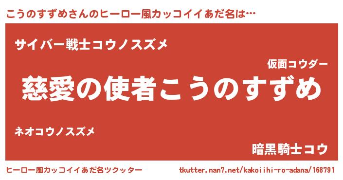 | 女子向けラノベタイトル風あだ名 | 『死神こうのすずめの再婚』 |