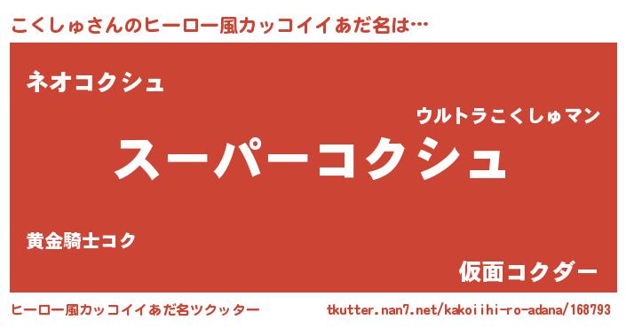 | 胡散臭い通販商品みたいなあだ名 | 『億万長者になれるブレスレット…その名も「こくしゅ」』 |