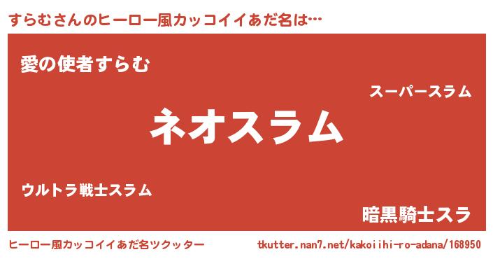 | 欧米人風あだ名 | 『アンジェラ・すらむ』『ダニエルすらむ』 |