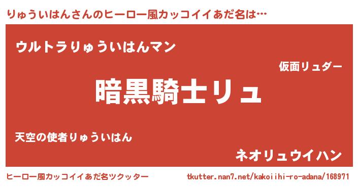 | 女子向けラノベタイトル風あだ名 | 『りゅういはんは平凡を望む』 |