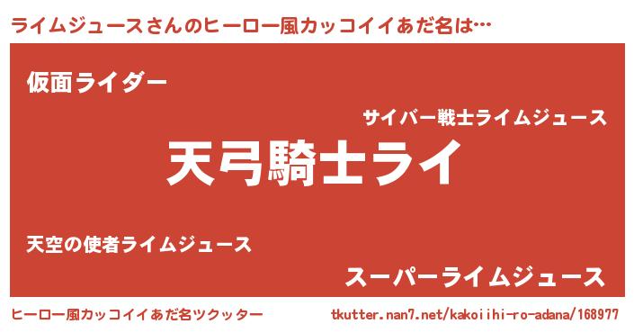 | 男性向けラノベタイトル風あだ名 | 『うちのライムジュースが世界を掌握している!』 |
