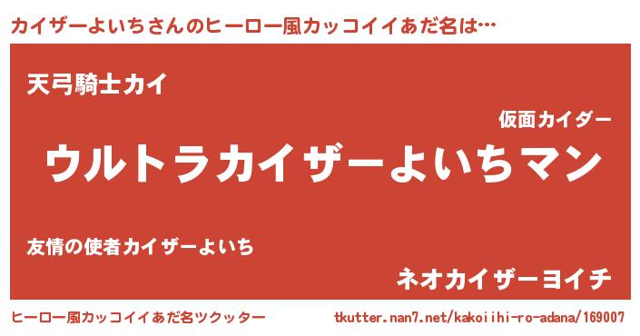 | 男性向けラノベタイトル風あだ名 | 『転生したらカイザーよいちだった件』 |