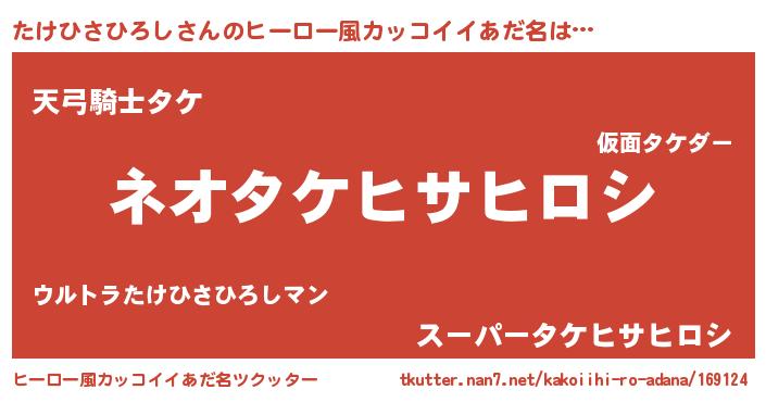 | ヘコむあだ名 | 『たけひさひろし(遠い目)』『たけを』 |