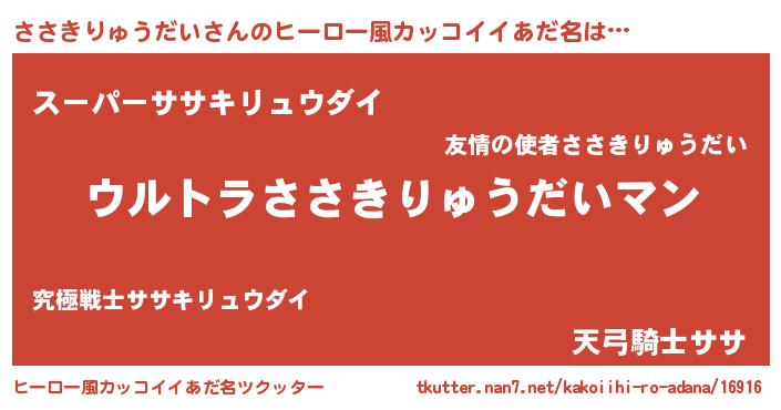 | ファンタジー風あだ名 | 『エターナルササキリュウダイー』 |